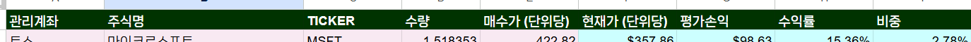 주식명: "마이크로소프트"
